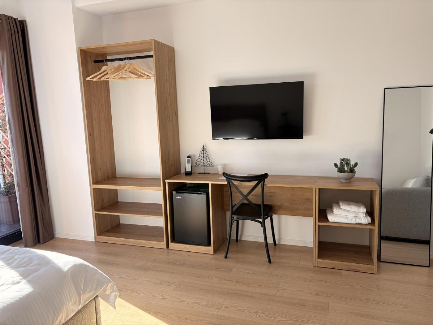 Double Room with Balcony. Offering free toiletries and bathrobes, this double room includes a private bathroom with a walk-in shower, a bath and a bidet. Featuring a balcony with city views, this double room also offers air conditioning and a flat-screen TV. The unit offers 1 bed. ;